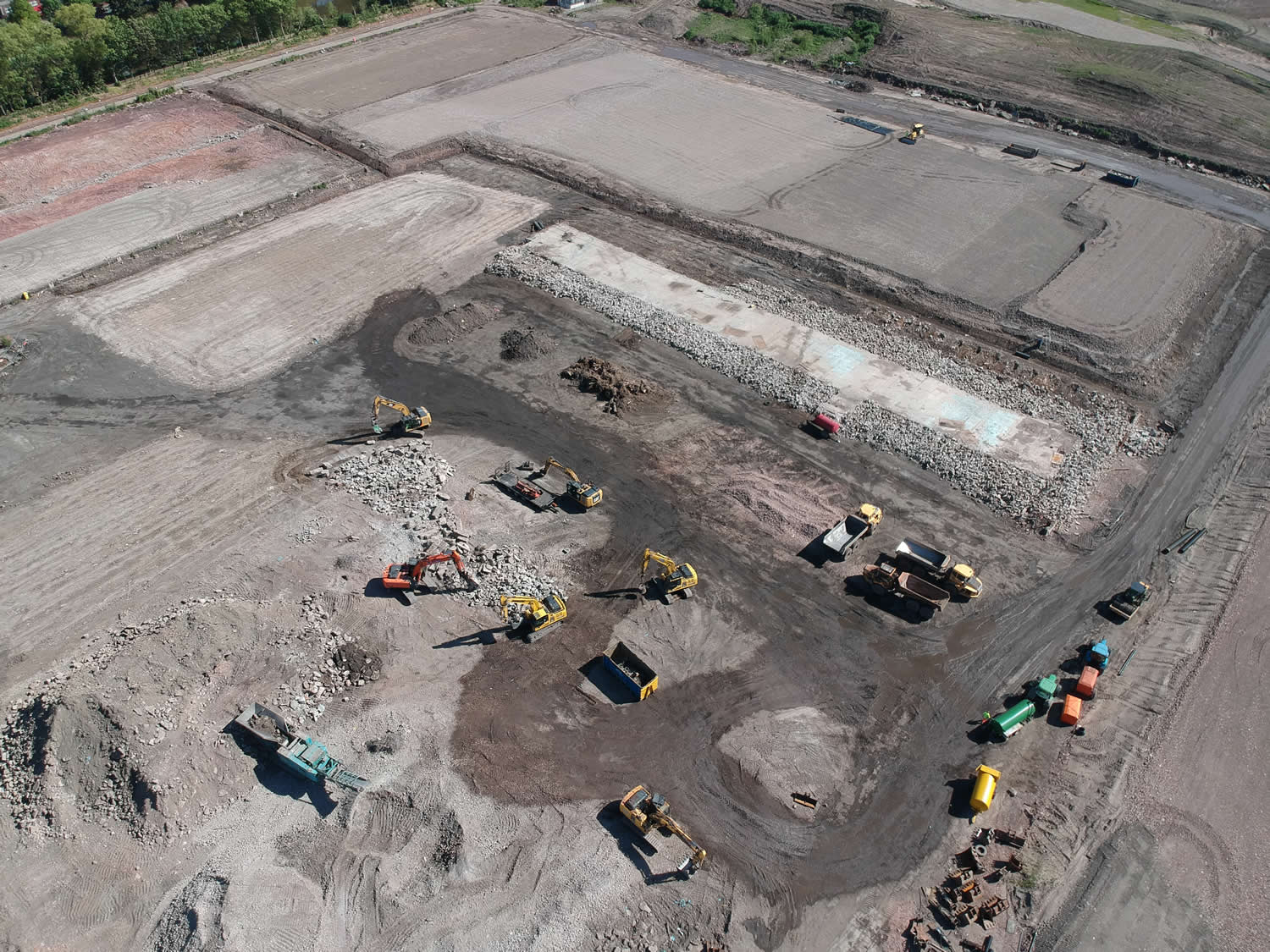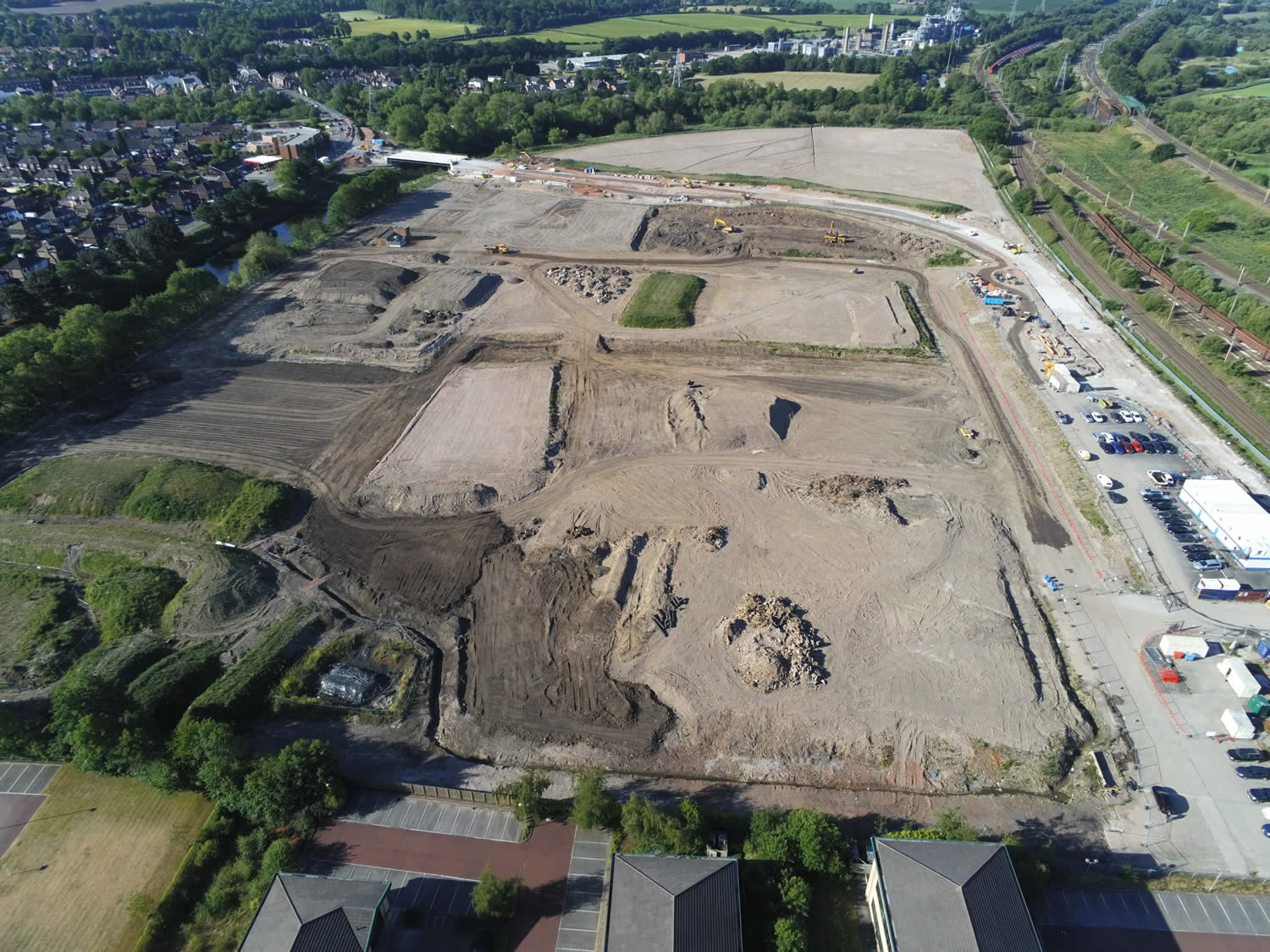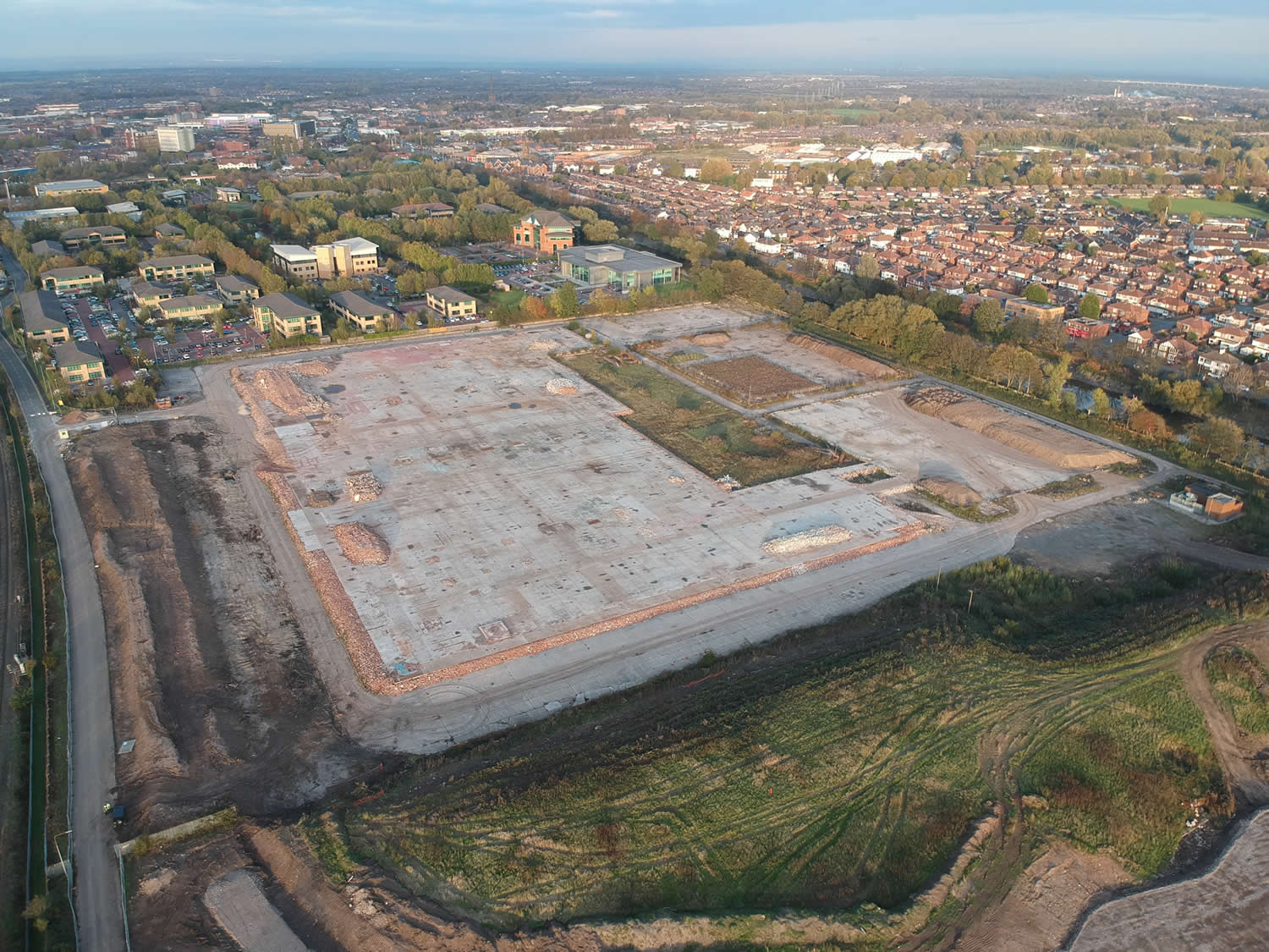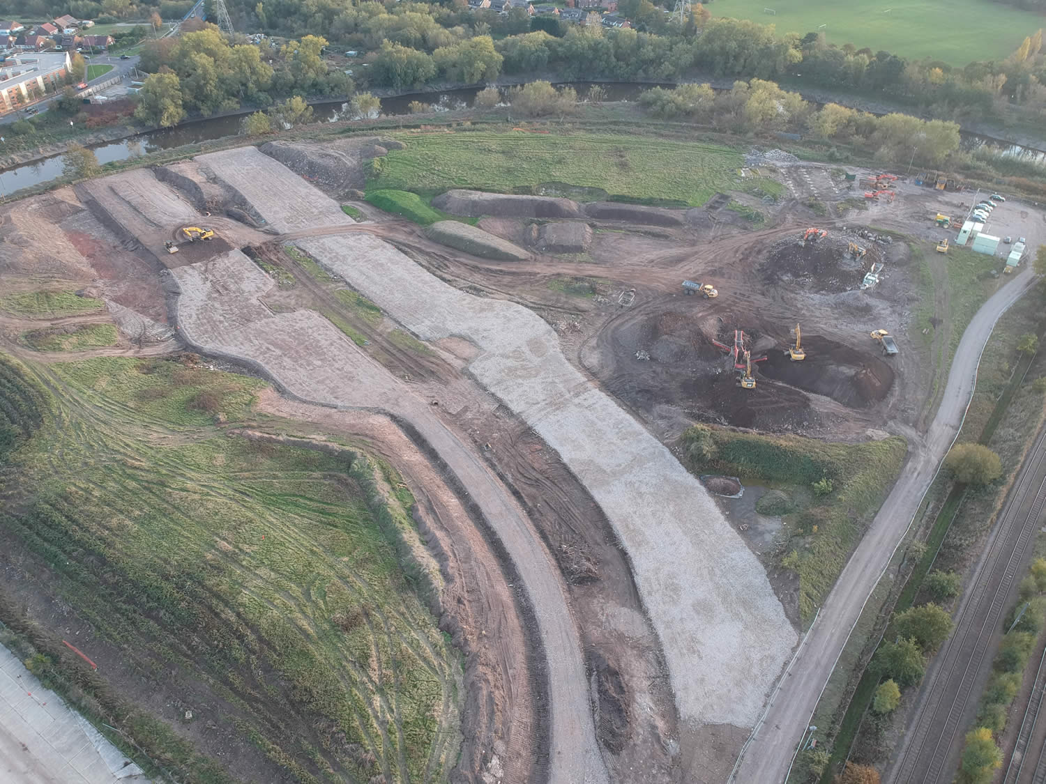 Remediation of existing part industrial / part golf driving range on unlicenced landfill site to facilitate construction of a low rise housing comprising demolition of industrial and leisure buildings and associated services bulk excavation, processing and deposition of made ground, importation and compaction of acceptable material, installation of temporary surface water drainage. Due to the low lying location of the site (7m AOD) a flood risk assessment was prepared to satisfy the Environment Agency relating to flood risk from adjacent River Mersey in order to set projected finished levels for the works. Preparation of drawings, specifications and bill of quantities and contract documentation for the works followed by contract administration and day to day supervision of works on site. Obtained planning permission for the site remediation works. Expert witness report for Client on drainage for legal challenge from adjacent watercourse landowner. Negotiation of abnormal brownfield site abnormal costs with land purchaser on behalf of Client. Carried out extensive geo-environmental ground Investigation in order to scope extent of the works and assess predicted total settlements caused by upfilling of levels.